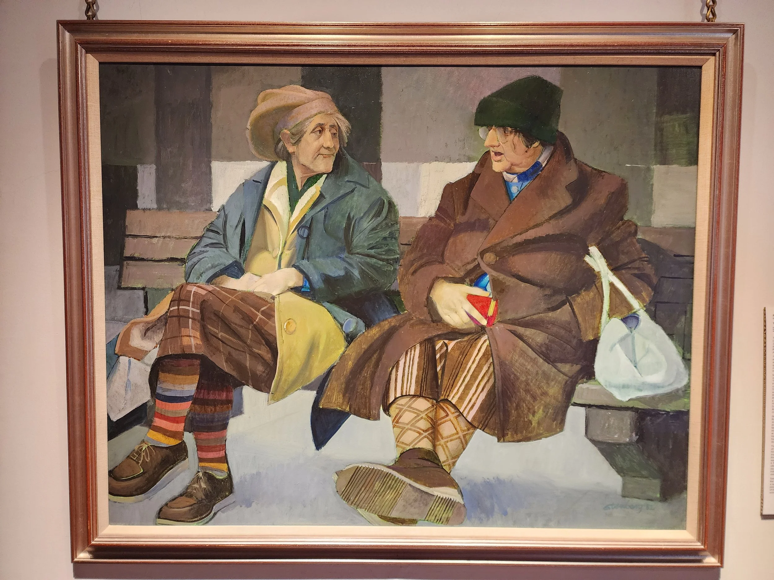 Two auld wifies, Dundee, Ron Stenberg, oil on canvas, 1982